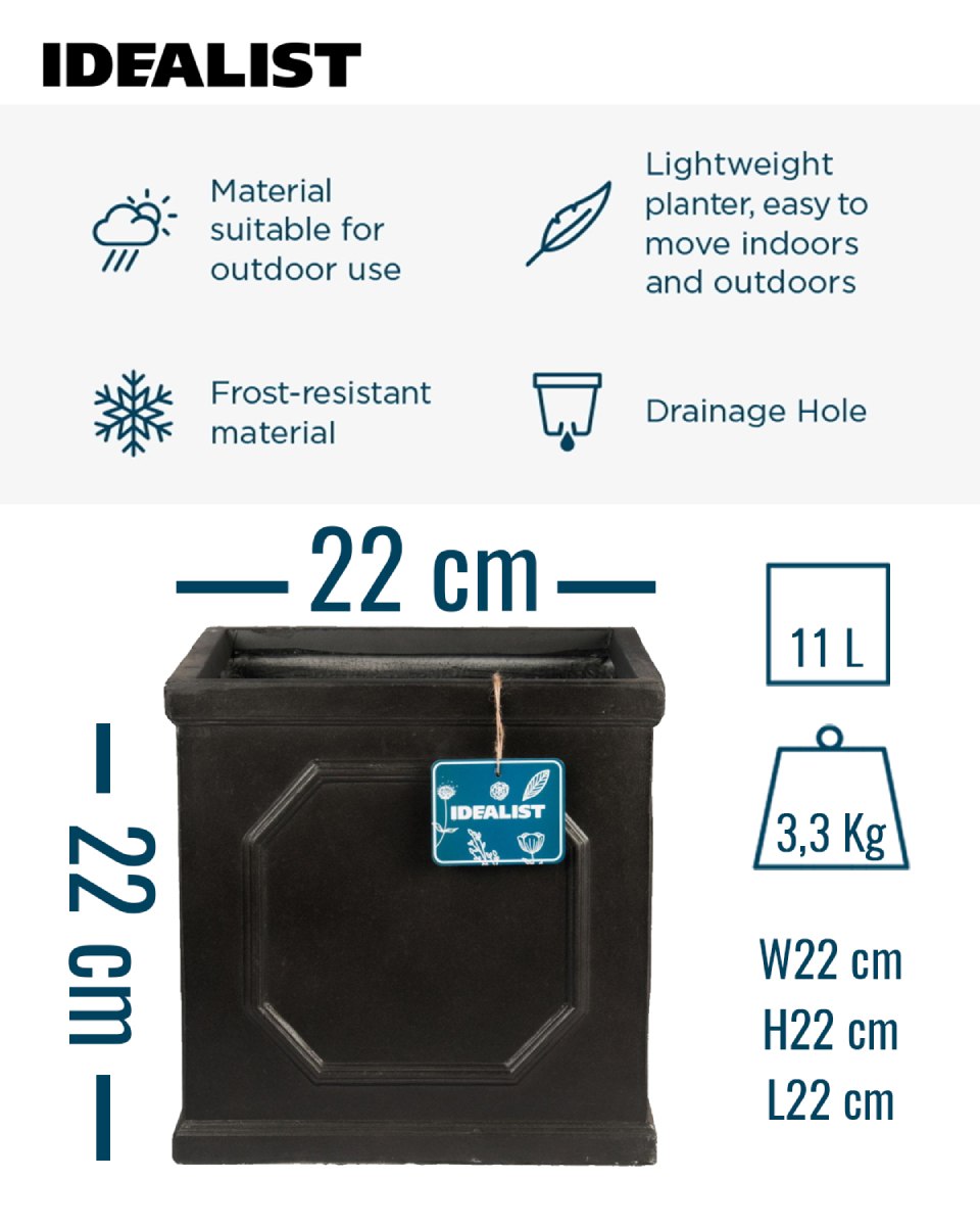 IDEALIST Lite Chelsea Flower Box Square Garden Planter, Faux Lead Light Stone Outdoor Plant | S25346 | Pot W22 H22 L22 cm, 11LSale