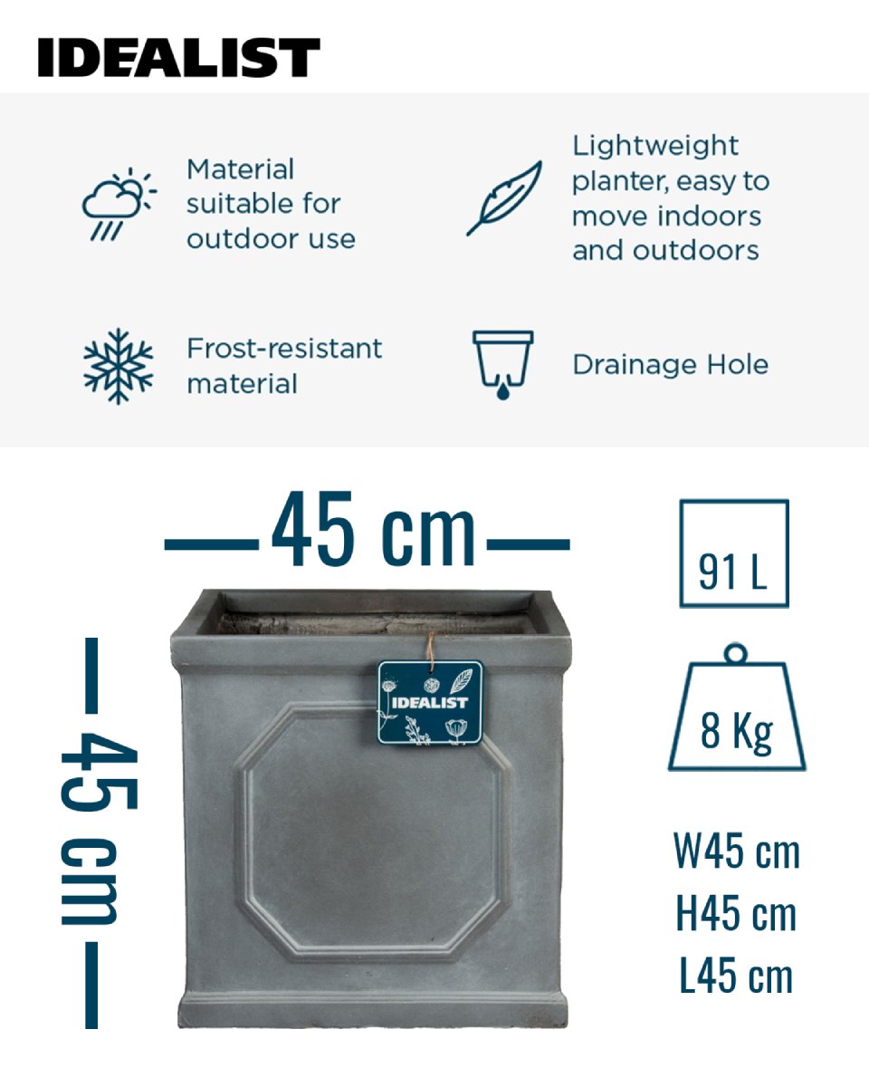 IDEALIST Lite Chelsea Flower Box Square Garden Planter, Faux Lead Grey Light Stone Outdoor | S25349 | Large Plant Pot W45 H45 L45 cm, 91LOffering