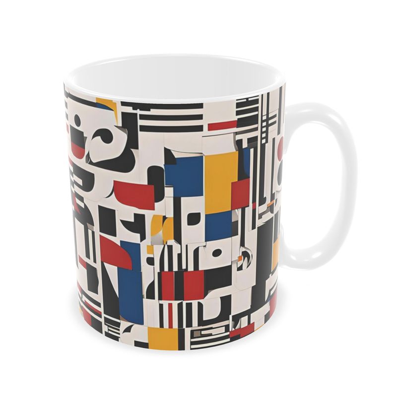 Celebrate the marriage of form and function with the Bauhaus Modernism Builders Mug. This striking wraparound design channels the iconic 1920s movement with clean geometric shapes, blocks of red, yellow, and blue, and sharp black linework — a timeless visual language of simplicity and strength. Made from high-fired ceramic, it’s every bit as robust as its design heritage demands, standing up to daily knocks on site, in the studio, or at home. The generous 350–400 ml capacity ensures your coffee or tea is always plentiful, while the thick, comfortable handle provides a confident grip. Finished with a glossy glaze that resists chips and fading, the mug keeps its bold clarity wash after wash. Microwave and dishwasher safe, it’s a daily essential for those who appreciate art, architecture, and a proper brew.